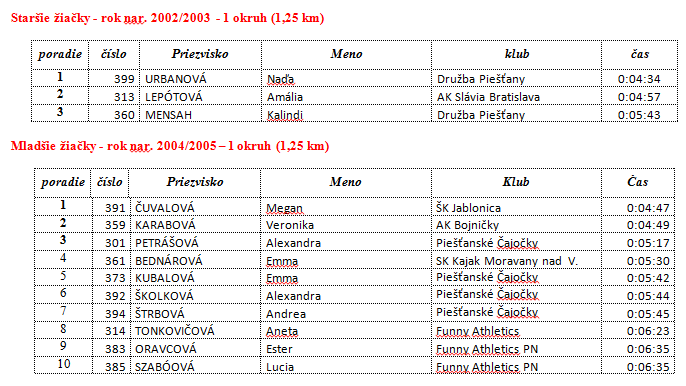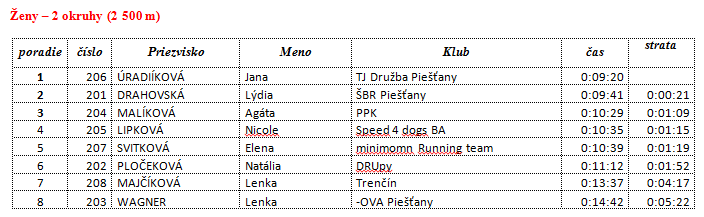 1. Jana Úradníková – TJ Družba Piešťany 00:09:20