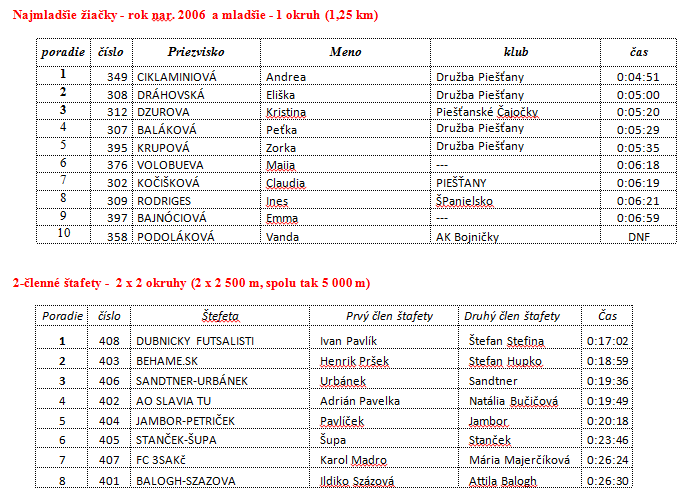Kompletné výsledky:
