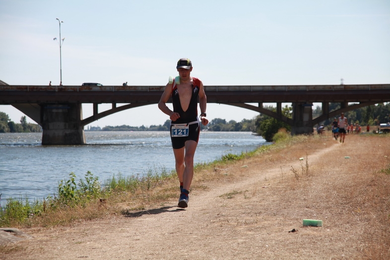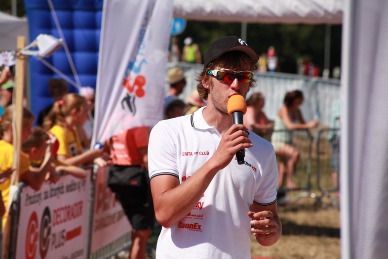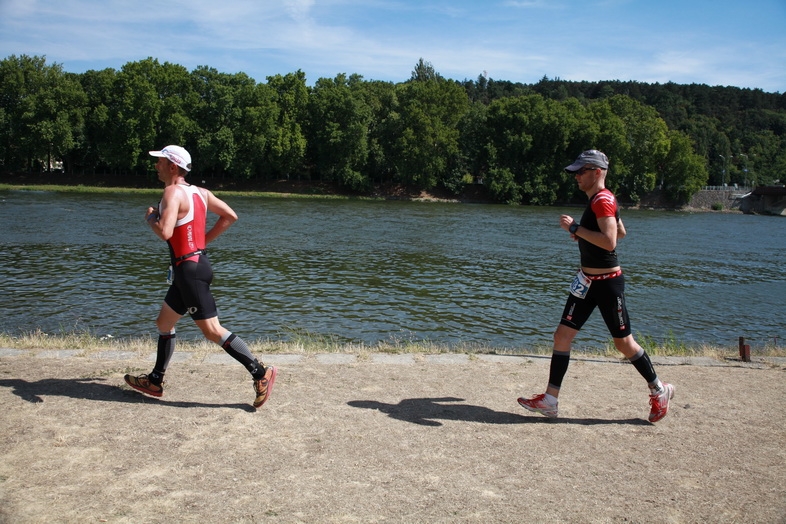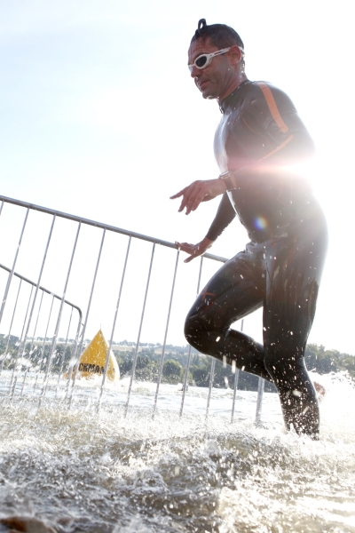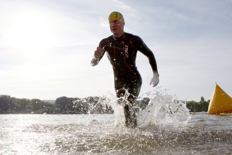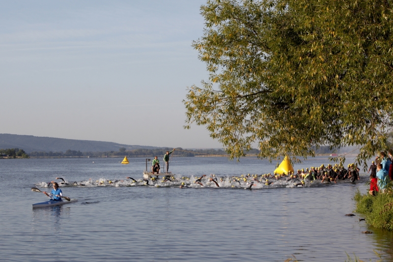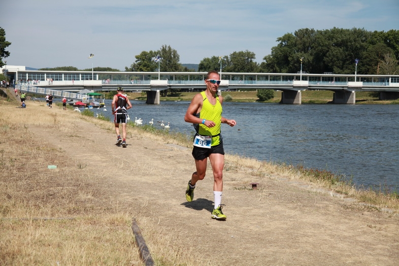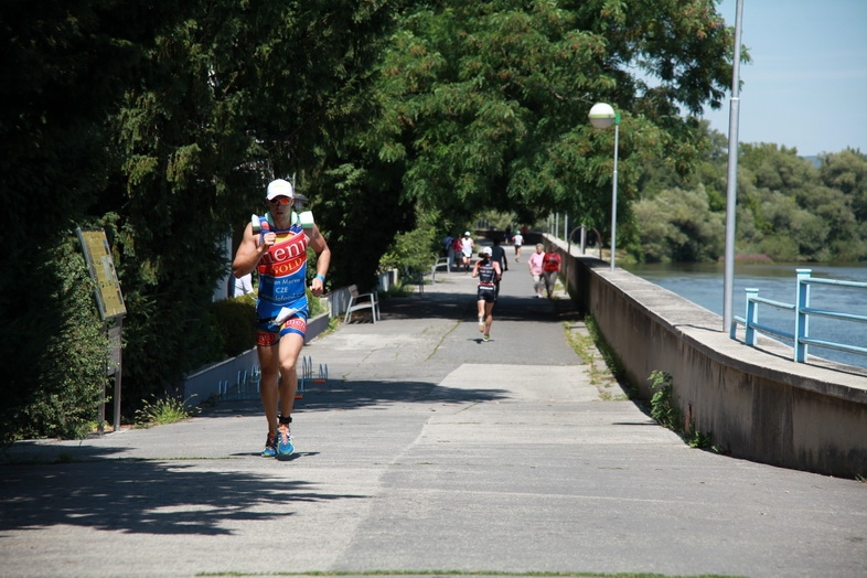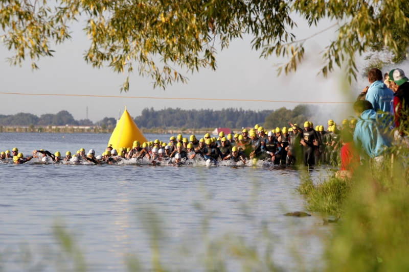 Pretekári sa vydali už o siedmej ráno na takmer štyri kilometre plávania vo vodách Váhu. Najrýchlejším plavcom bol už tradične Andrej Orlický z Trnavy, ktorý 3,8 km zvládol za 47:38 min. Druhý šiel z vody Lukáš Slatinský so stratou vyše päť minút. Na treťom mieste doplával Lukáš Krpec. Top favorit Petr Vabroušek bol po plaveckej časti až na deviatom mieste so stratou približne 7,5 minúty.