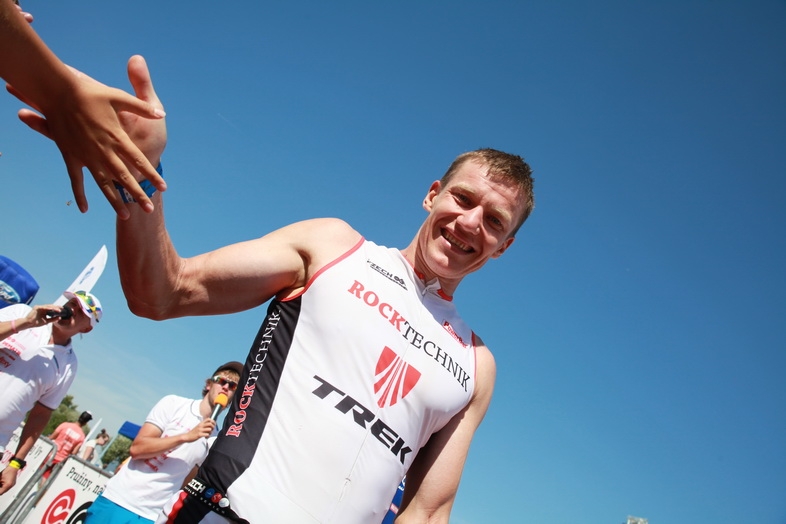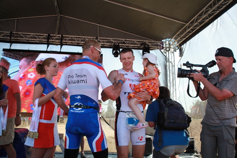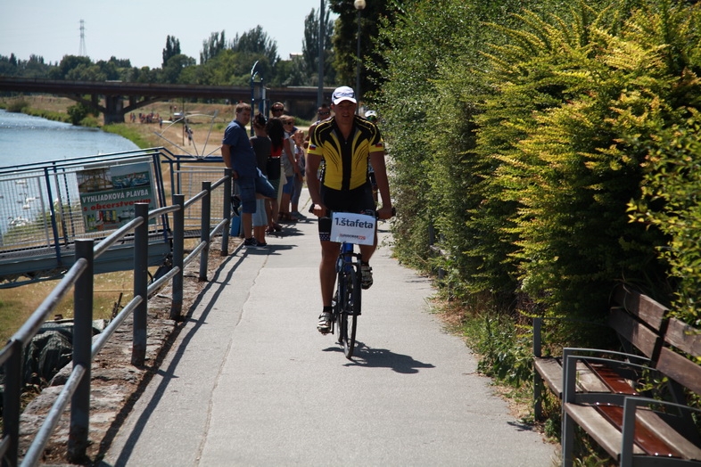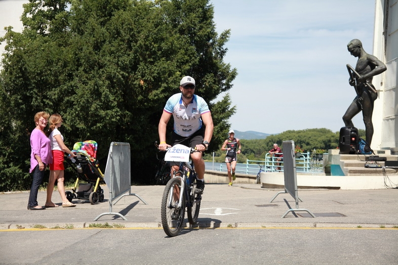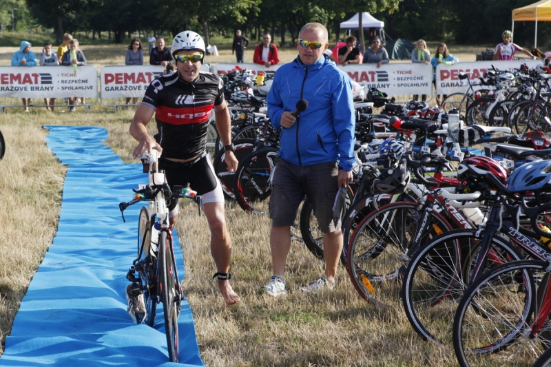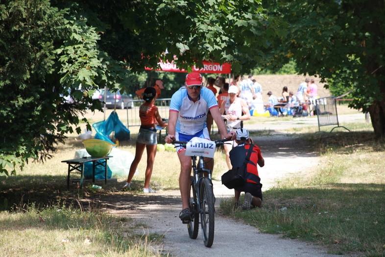 V cyklistickej časti dlhej 180 km na okruhu medzi Piešťanmi a Madunicami dominoval Lukáš Krpec časom 4:38:16 hod. Druhý bol Josef Křivánek (4:39:50 hod) a tretí Petr Vabroušek (4:41:18 hod). Vabroušek tak strácal po dvoch dieloch dlhého triatlonu na Krpca 4,5 minúty.