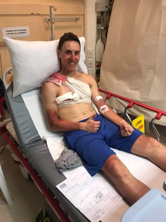 Triatlonový tím Trinity triathlon team Bratislava, za ktorý Ondrej preteká, zostal do 23. februára na sústredení na juhu Afriky. Pre Piešťanca však skončilo predčasne. V nedeľu 18. februára mal pri tréningu na bicykli nehodu, pri ktorej si praskol kľúčnu kosť a značne poškodil kožu na ramene a prsiach. „Išiel som po hlavnej ceste a auto mi nedalo prednosť, tak som do neho napálil. Ten náraz si nejak extra nepamätám. Hlavne bol problém, že na ceste bolo veľmi veľa skla a som si roztrhal ruku. Mám prasknutú kľúčnu kosť, ale tá je v pohode, s tou netreba robiť nič. Druhý problém je, že mám dosť roztrhanú kožu na ramene a na prsiach, takže to mi musia vyčistiť a zašiť,“ povedal nám o svojom stave Ondrej. Podľa jeho ďalších slov ho tento zákrok čaká dnes, keďže včera už mal plastický chirurg na Constantiberg Medi-clinic plno.