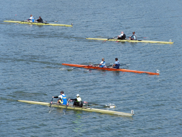 V sobotu bola prvým závodom, kde sa predstavili piešťanskí veslári štvorka mužov Masters, kde pretekali štyri lode, z toho dve piešťanské. Posádka Vičan, Berlanský, Stančík , Ulehla skončila tretia a Drlička, Mičutka, Škulec, Jurga skončili na štvrtom mieste, keď ich zdolali lode z Bratislavy a spoločná loď Ostravy a Hodonína. Medzi štrnásťročnými staršími žiačkami si dobre počínala piešťanská veslárka Katarína Horvátová, keď skončila druhá za víťaznou Robinou Bolečkovou z Břeclavy. V závode osiem mužov Masters sa predstavili dve domáce osemveslice. Hecovanie a podpichovanie, ktorá z lodí je lepšia, si pretekári žiaľ opäť nemohli rozdať na vode. Už po niekoľký raz bol súboj týchto dvoch lodí prekazený technickou závadou. Po približne 300 metroch viedla posádka Kuhajda Pavol, Peter Mičutka, Eduard Drlička, Miroslav Škulec, Milan Rusnák, Hudcovič Tomáš, Branislav Jurga, Mário Ulehla s kormidelnéčkou Erikou Jurgovou, avšak pri nástupe sa podarilo Andrejovi Vičanovi, ktorý štrogoval osmu v ktorej sedeli aj Martin Ulehla, Ondrej Berlanský, Juraj Stančík, Tomáš Kubla, Norbert Šmondrk, Andrej Prítula, Marián Obert a kormidelníčka Alexandra Vičanová, zlomiť veslo a bolo po preteku. V sobotu sa ešte raz predstavila staršia žiačka Katrína Horvátová, ktorá išla dvojskif s jej premožiteľkou zo skifu, avšak nestačili na šintavskú dvojicu Patríciu a Moniku Tiché.