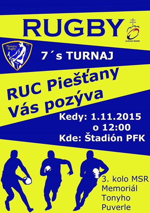 „V nedeľu ukončia slovenskí ragbisti jesennú časť sedmičkovej súťaže v Piešťanoch. Pre Piešťany to bude historická udalosť, keď sa na štadióne PFK odohrajú vôbec prvýkrát súťažné stretnutia v našom športe. Tretie kolo Majstrovstiev Slovenska 7´s – Memoriál Tonyho Puverle sa začne o 12:00 a na turnaji sa okrem ligových zápasov odohrajú aj exhibičné stretnutia domácich mladíkov. Prítomní diváci uvidia aj prezentáciu rugby na vozíčku, ktorú nám predstaví slovenský reprezentant v tomto športe Adam Porubský. Do Piešťan by sa rugby malo tento rok ešte vrátiť, a to na reprezentačnej úrovni. Naša únia plánuje odohrať prípravné stretnutia v sobotu 21. novembra v kategórii juniorov U18, ako aj zápas reprezentačného tímu mužov,“ informoval portál Slovenskej rugbyovej únie.