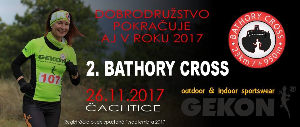 Bathory Cross je tento rok finálový podujatím trailovej série štyroch behov pod názvom „Výživná štvorka“. Parametre trate sú rovnaké ako minulý rok, dĺžka 23 km s prevýšením 950m. Štart preteku je v nedeľu 26.11.2017 o 10.00 hod. Prezentácia prihlásených bežcov začína od 8.00 hod. v budove Základnej školy v Čachticiach. Po skončení bude pripravené teplé jedlo a prebehne vyhlásenie víťazov preteku a tiež celej série. Registrovať sa môžete tu.
