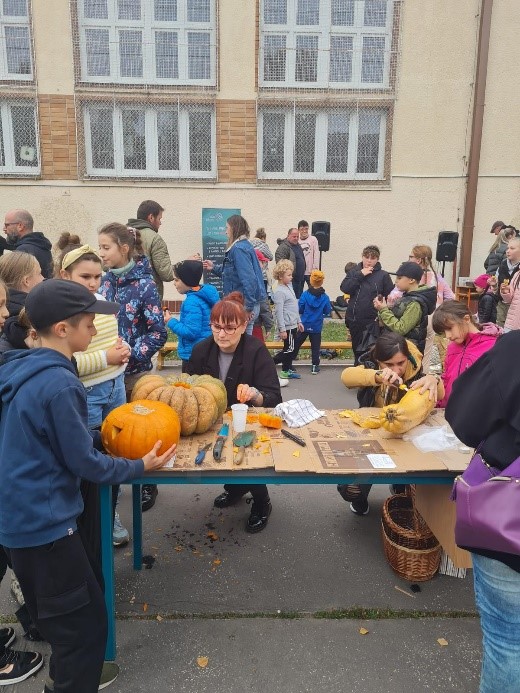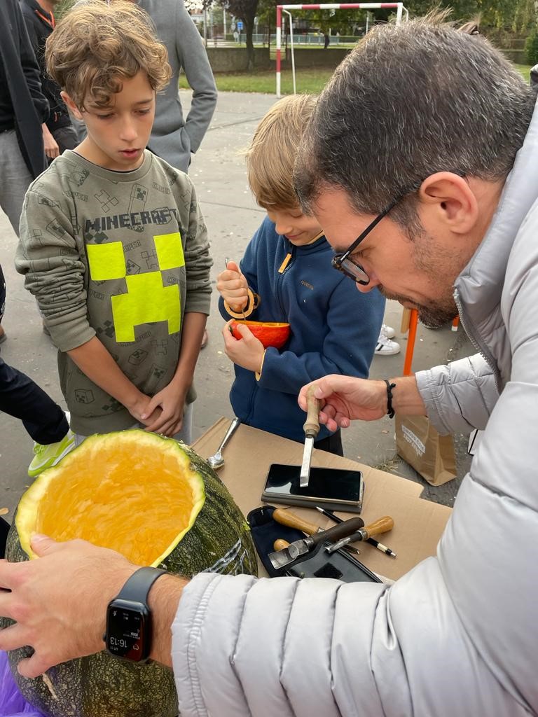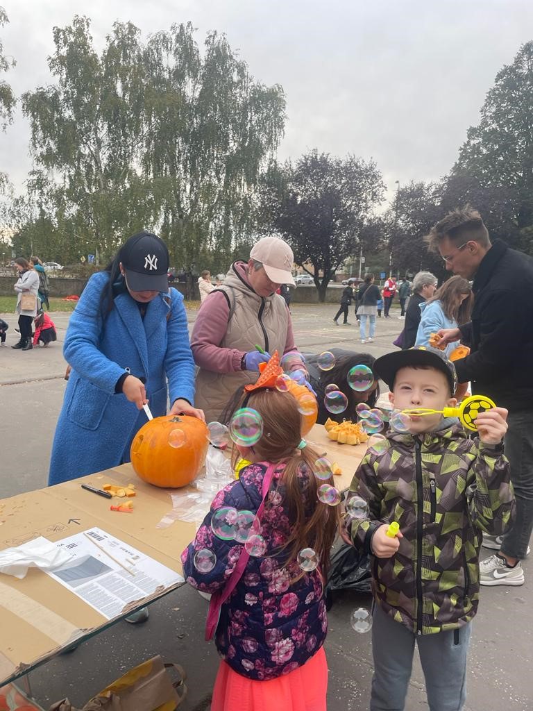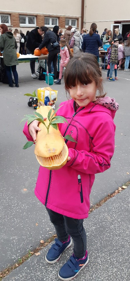 Po úspešnej akcii Bezpečne na prázdniny sme sa opäť stretli na školskom dvore. Prišli súrodenci, rodičia aj prarodičia našich žiakov, učitelia a priatelia školy. Tvorilo sa z gaštanov a jesenných listov, závodilo sa v jazde zručnosti a rýchlosti s autíčkami na ovládanie, vo veľkom sa fúkali bublinky z bublifukov. Hlavnou aktivitou však bolo vyrezávanie tekvíc a fantázii sa veru medze nekládli. Nakoniec sa všetky výtvory, medzi ktorými sa našla aj krásna labuť alebo veľryba, zhromaždili a rozsvietili. Deti mali radosť aj z tradičného hľadania pokladu v školskej záhrade a keďže je jeseň, tak najväčším pokladom bol košík plný jabĺk a hrušiek, s ktorými sa deti pekne podelili.